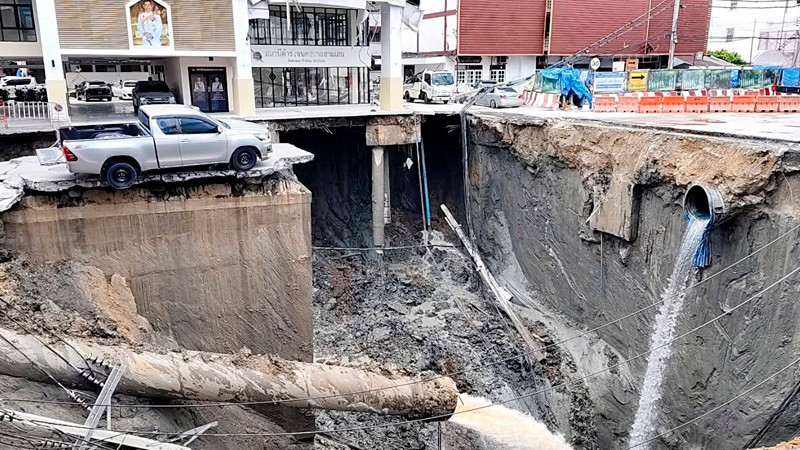 Mega socavón aparece en Tailandia; evacúan hospital por riesgo de hundimiento