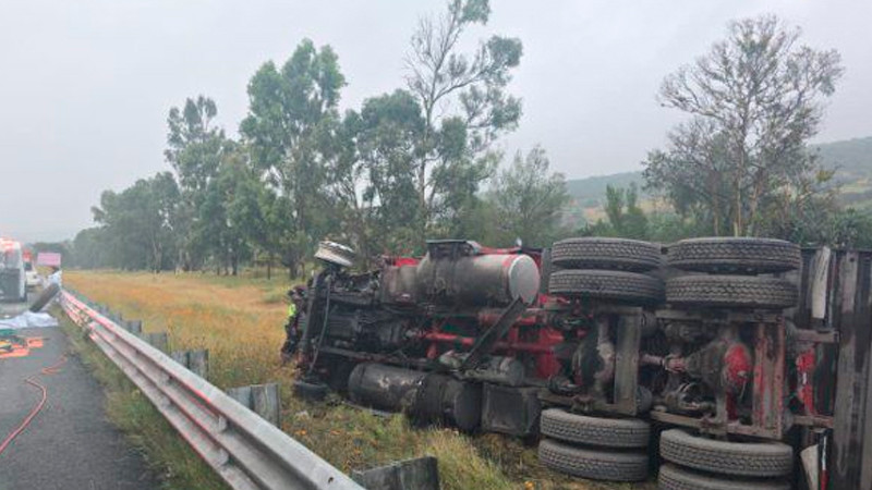 Trailero pierde la vida en choque volcadura, en el libramiento Noreste, en El Marqués, Querétaro